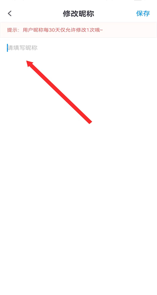 4、在修改昵称页面,输入新昵称后完成保存,即可完成昵称修改操作。
