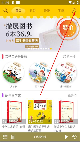 1、打开蜗牛壳app,点击首页右上角的个人中心图标。