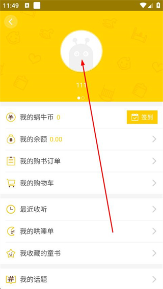 2、在个人中心页面,点击头像区域,进入个人资料页面。
