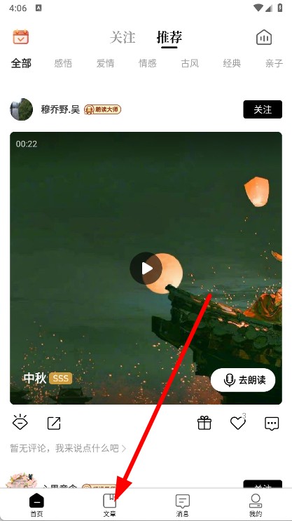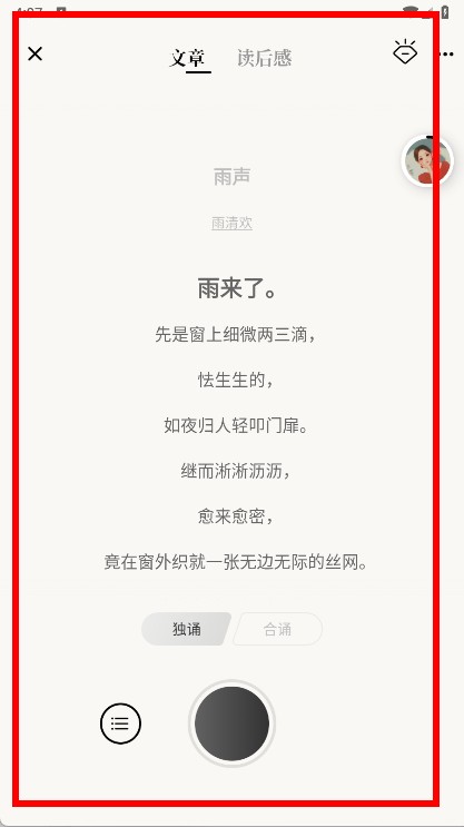 4、点击文章即可查看文章内容,进行诵读。