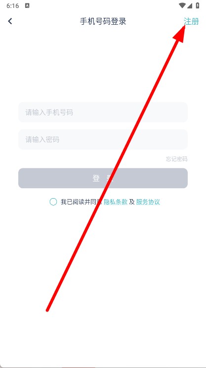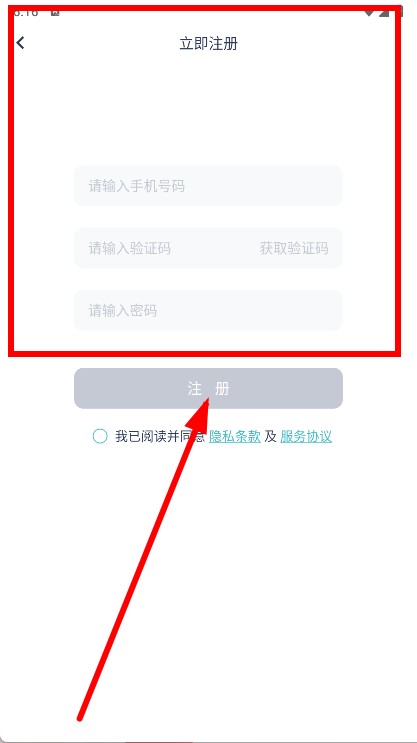 4、输入手机号码、验证码、密码,勾选同意后,点击注册按钮,完成注册。