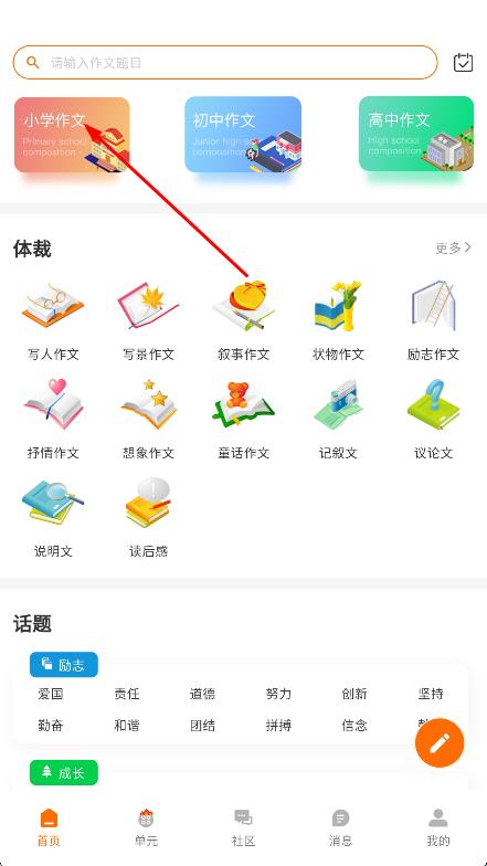 1、在作文吧首页,点击小学作文,进入小学作文页面。