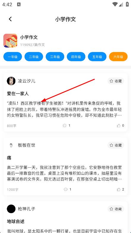 3、在六年级作文列表中,选择一篇作文,进入该作文详情页面。