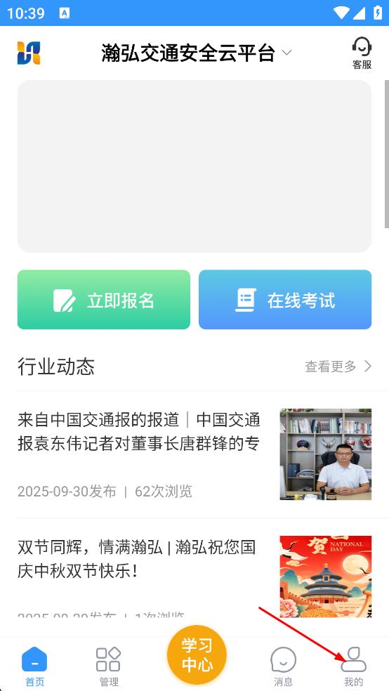 2、进入瀚弘交通安全云平台页面后,点击右下角我的选项。