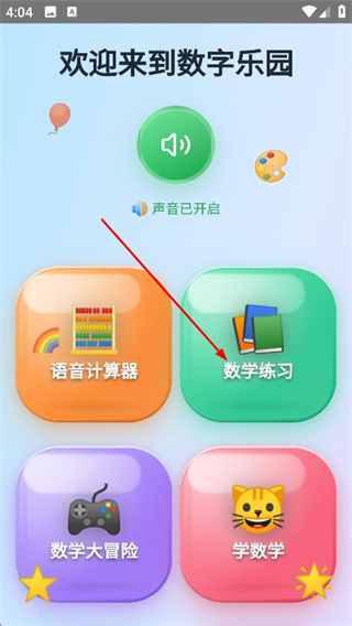 2、在儿童语音计算器主界面,点击数学练习,进入数学练习选择页面。