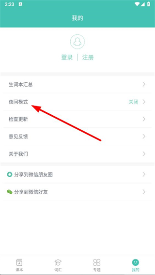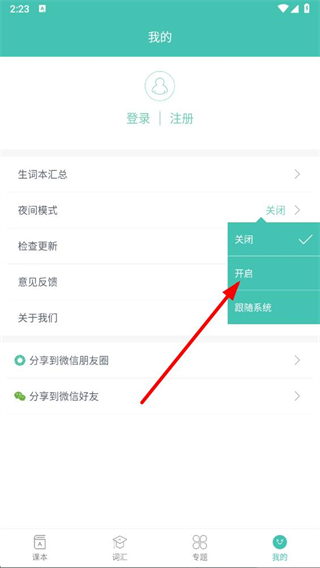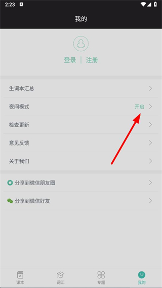3.单词译文隐藏和显示、字体样式和大小、夜间模式等都可以自由设置,学习更方便。
