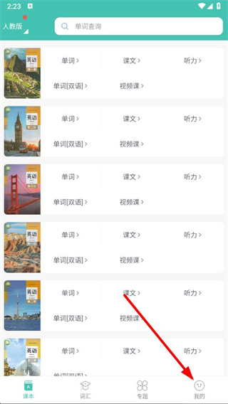 1、打开高中单词课堂app,在底部导航栏中点击我的选项,进入个人相关页面。