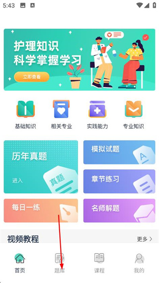1、在医教无忧的首页,点击题库,进入题库页面。