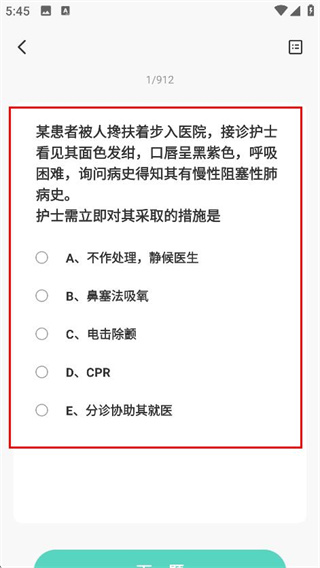 4、在题目页面,可查看并作答护士资格相关题目。