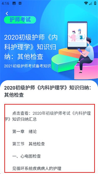 4、在试题详情页面,可查看2020初级护师的其他检查的具体内容。
