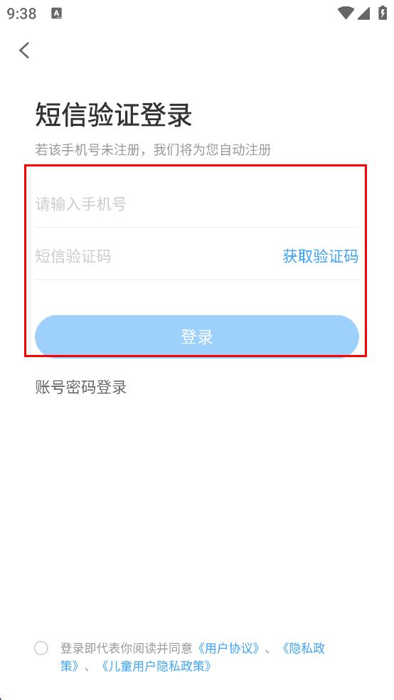 4、在登录选择界面,选择短信验证登录,输入手机号,获取并输入验证码,点击登录即可。