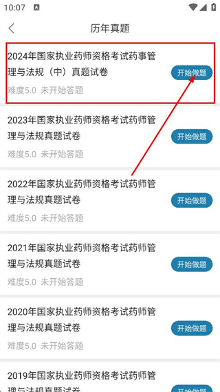 3、在历年真题页面,选择真题试卷,点击做题,进入真题答题页面。