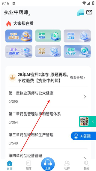 1、打开百通医学APP,在首页找到并点击想要练习的科目章节。