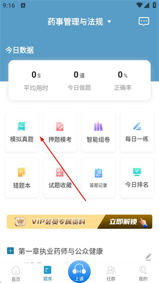 2、进入科目练习页面后,点击模拟真题选项。
