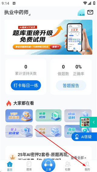 2、进入APP首页后,点击底部导航栏中的我的选项。
