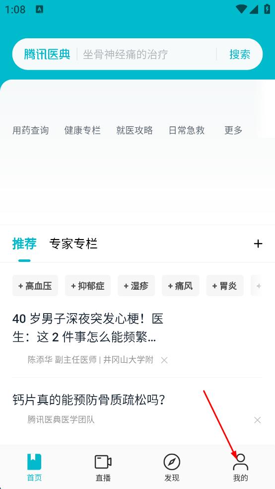 2、在腾讯医典首页,点击右下角我的,进入个人页面。