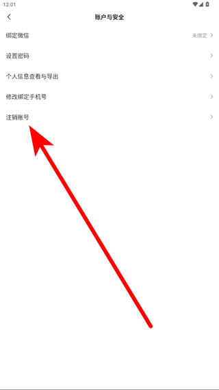 4、在账户与安全页面,点击注销账号选项,按页面提示完成后续操作即可注销账号。