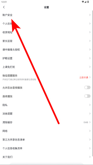 3、在设置界面里,点击账户安全选项,进入账户与安全页面。