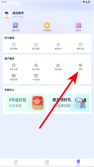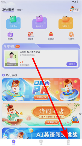 1、打开高途素养APP,点击底部导航栏最右侧我的进入个人页面。
