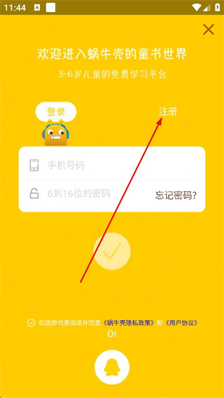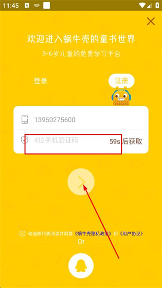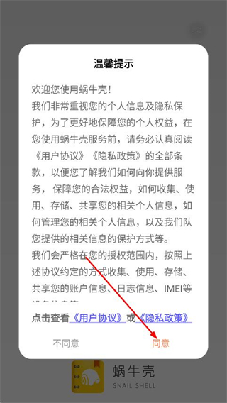 1、打开蜗牛壳,在弹出的提示页面中,点击同意。
