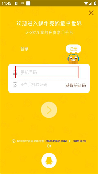 3、在注册页面的输入框中,填写需要注册的手机号码。