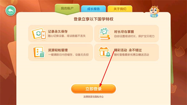 3、进入家长中心相关界面后,点击立即登录按钮。