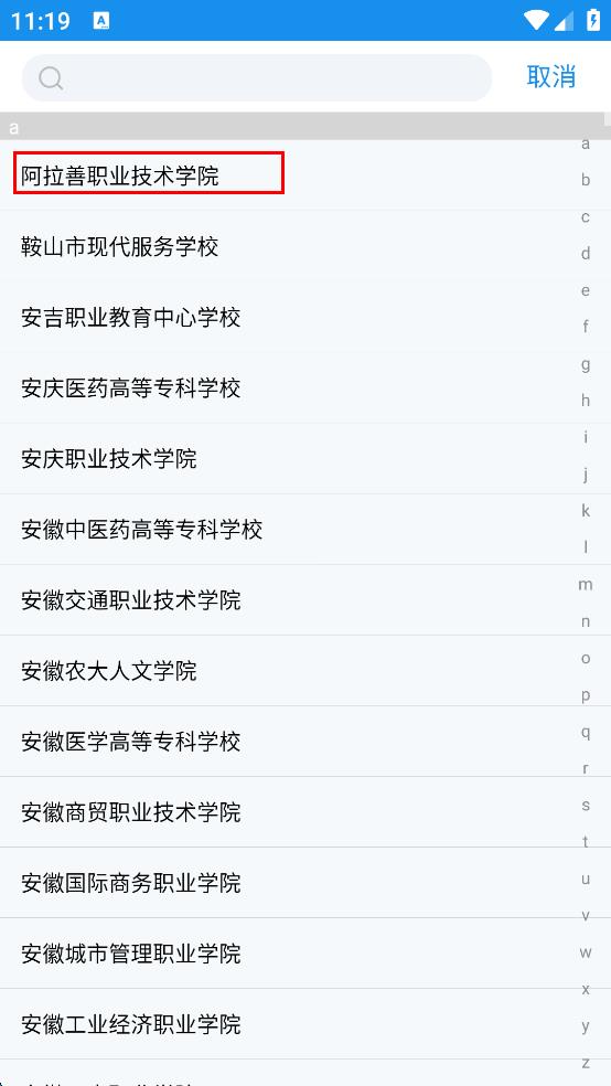 2、在学校选择页面,选择所在学校,进入实习管理信息化平台登录页面。