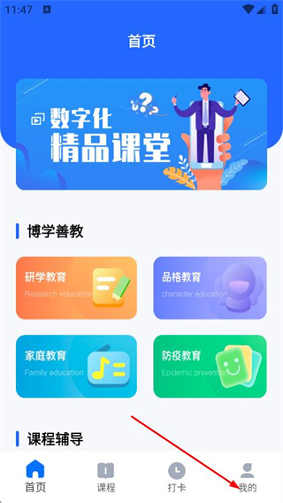 1、在优学课堂的首页,点击底部我的,进入我的页面。