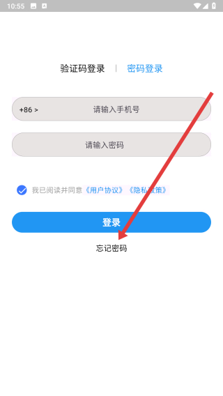 2、在切换到密码登录界面后,若忘记了密码,可以点击下方忘记密码按钮解决。