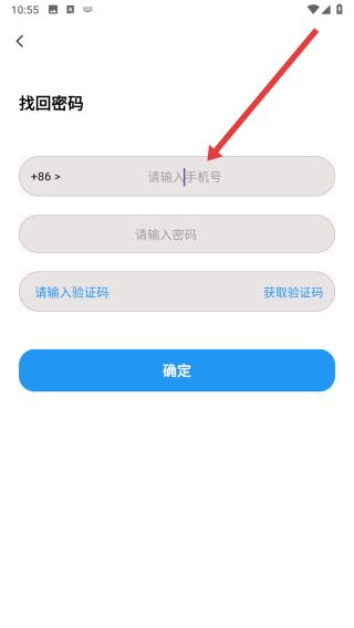 3、在跳转到找回密码页面中,先点击上方输入框依次填写手机号和新密码。