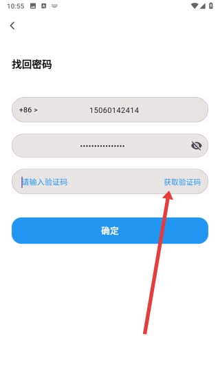 4、在填写好上述信息后,点击获取验证码按钮,等待后填写验证码完成新密码的设置。