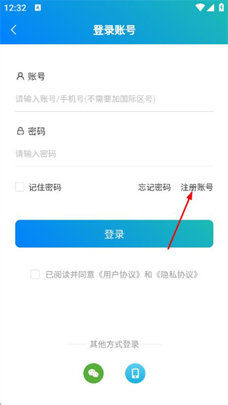 3、在登录账号页面,点击注册账号,进入注册账号页面。