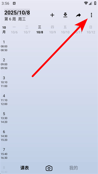 1、在wakeup课表的页面,点击右上角三点菜单图标,弹出功能选项。