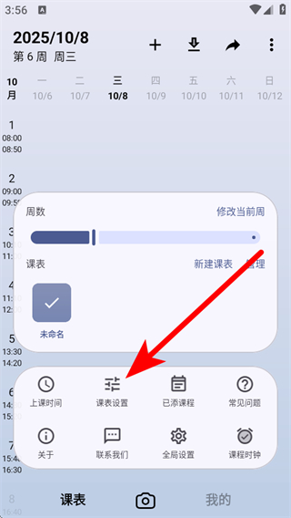 2、在弹出的选项中,点击课表设置的按钮,进入课表设置页面。