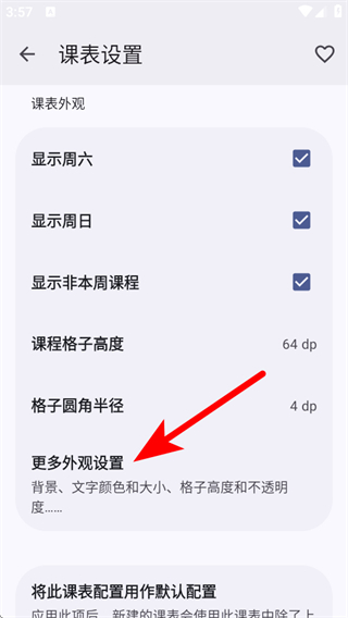 3、在课表设置页面,点击更多外观设置,进入课表外观的页面。