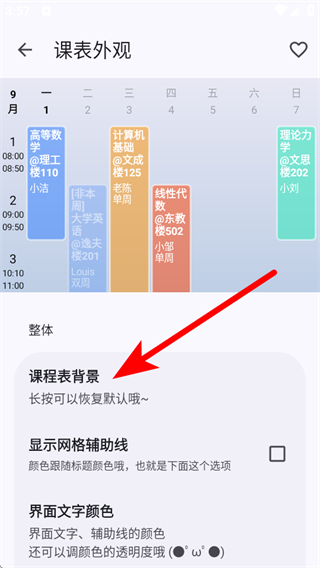 4、在课表外观页面,找到课程表背景,按提示进行背景更换操作。
