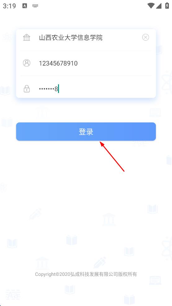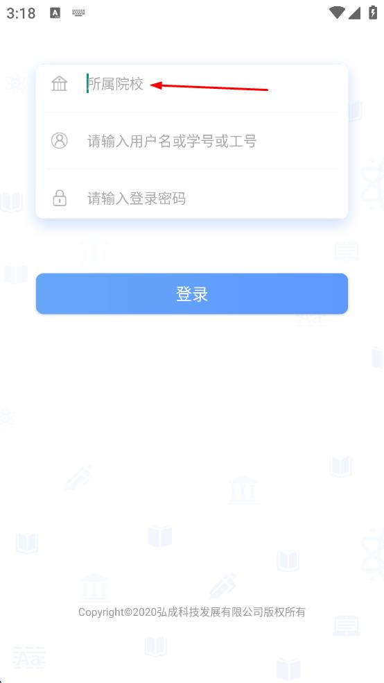 2、在悠学派登录页面,点击所属院校输入框,输入院校名称。