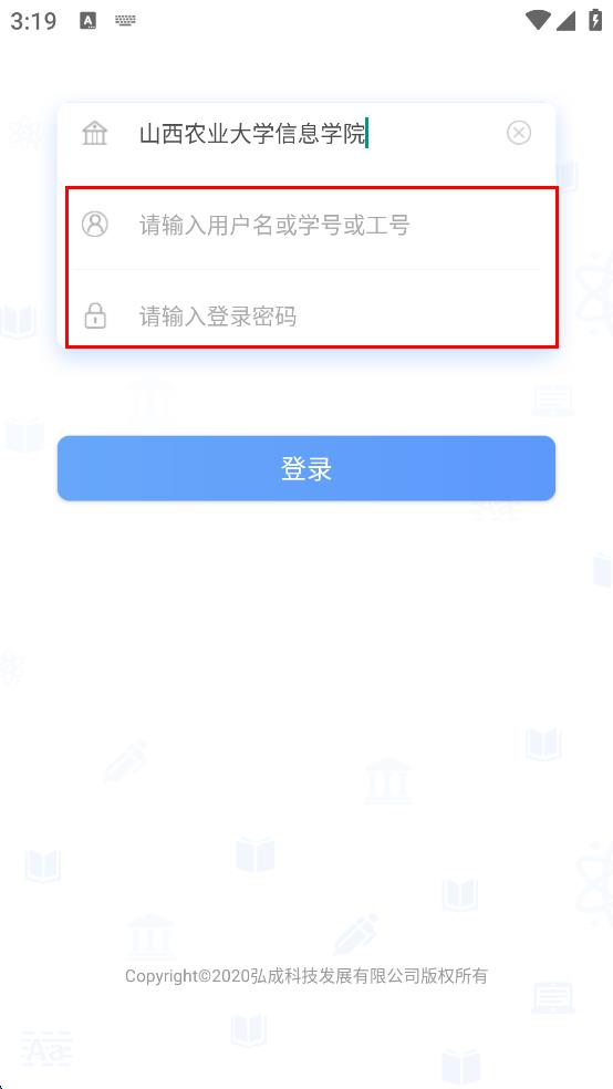 3、点击用户名或学号或工号输入框,输入相应信息,再点击密码输入框,输入密码。