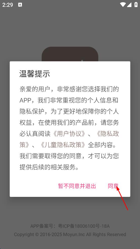1、打开中考历史通,在弹出的温馨提示页面,点击同意,进入中考历史通首页。