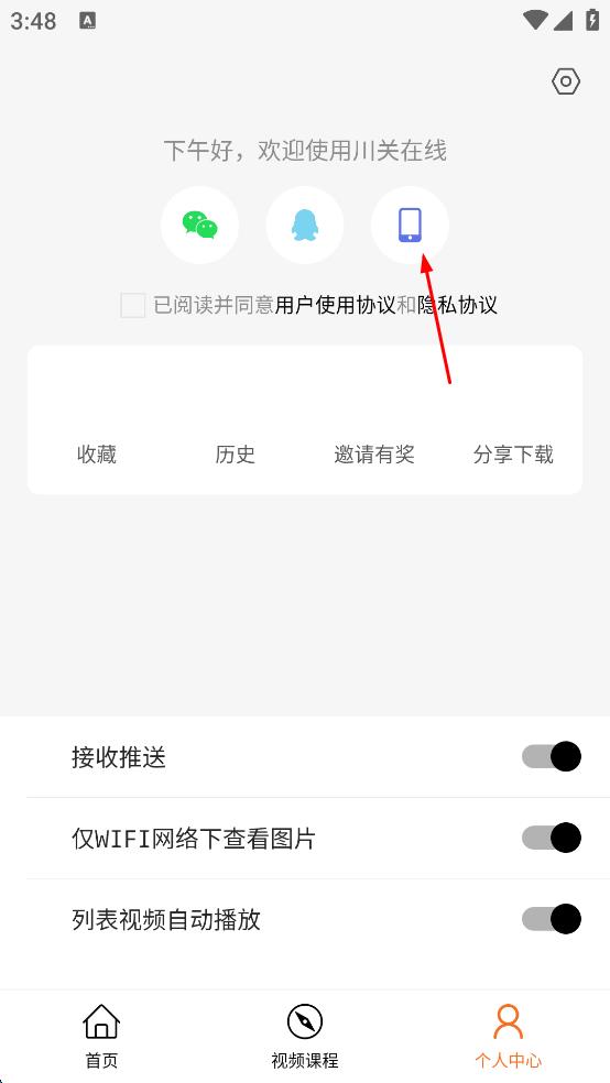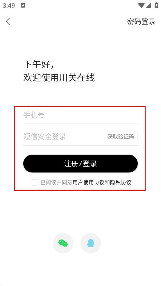 4、在登录界面输入手机号,点击获取验证码并输入,勾选已阅读并同意用户使用协议和隐私协议,点击注册/登录。