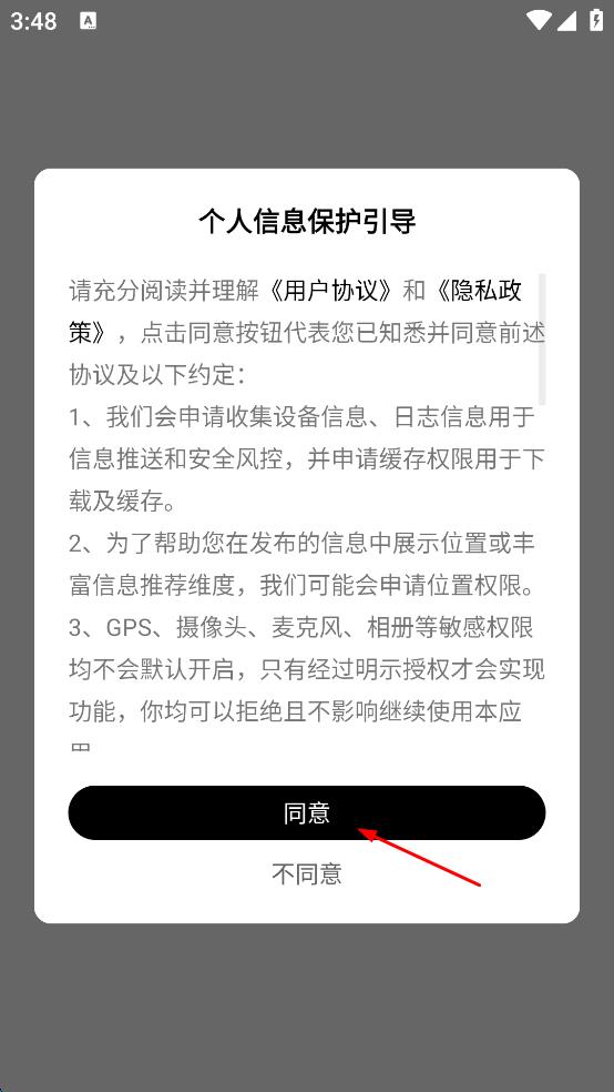 1、打开川关在线,出现个人信息保护引导提示框,点击同意。