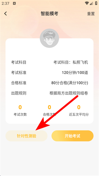 2、在智能模考页面,点击针对性测验,进入针对性测验设置页面。