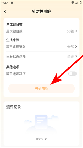 3、在针对性测验设置页面,点击开始测验,进入小考答题页面。