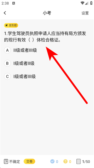 4、在小考答题的页面,即可开始解答题目,完成答题的操作。