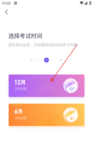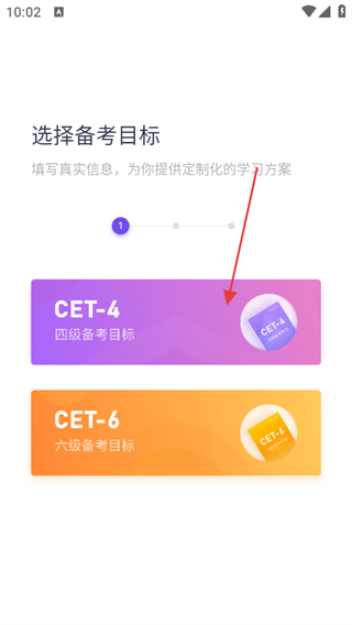 2、注册完成后,进入选择备考目标界面,根据自身需求,点击选择备考目标。