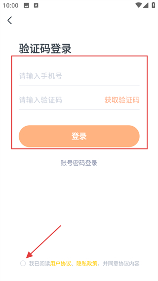 1、打开粉笔四六级APP,进入验证码登录界面,输入手机号、验证码,勾选意协议内容,点击登录。