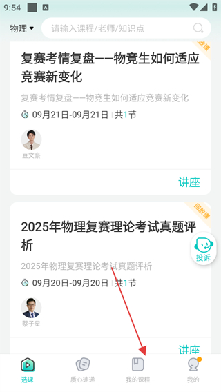 2、在我的课程页面中,找到想要观看回放的具体课程并点击。