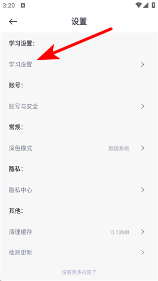 3、在设置的页面,需要点击学习设置按钮,进入学习设置页面。