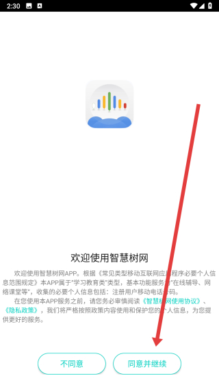 1、在打开app后,可以通过点击屏幕中的同意并继续按钮,进入使用。