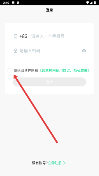 2、在进入到登录页面中,开始登录前,需先点击勾选我已阅读并同意按钮后进行操作。